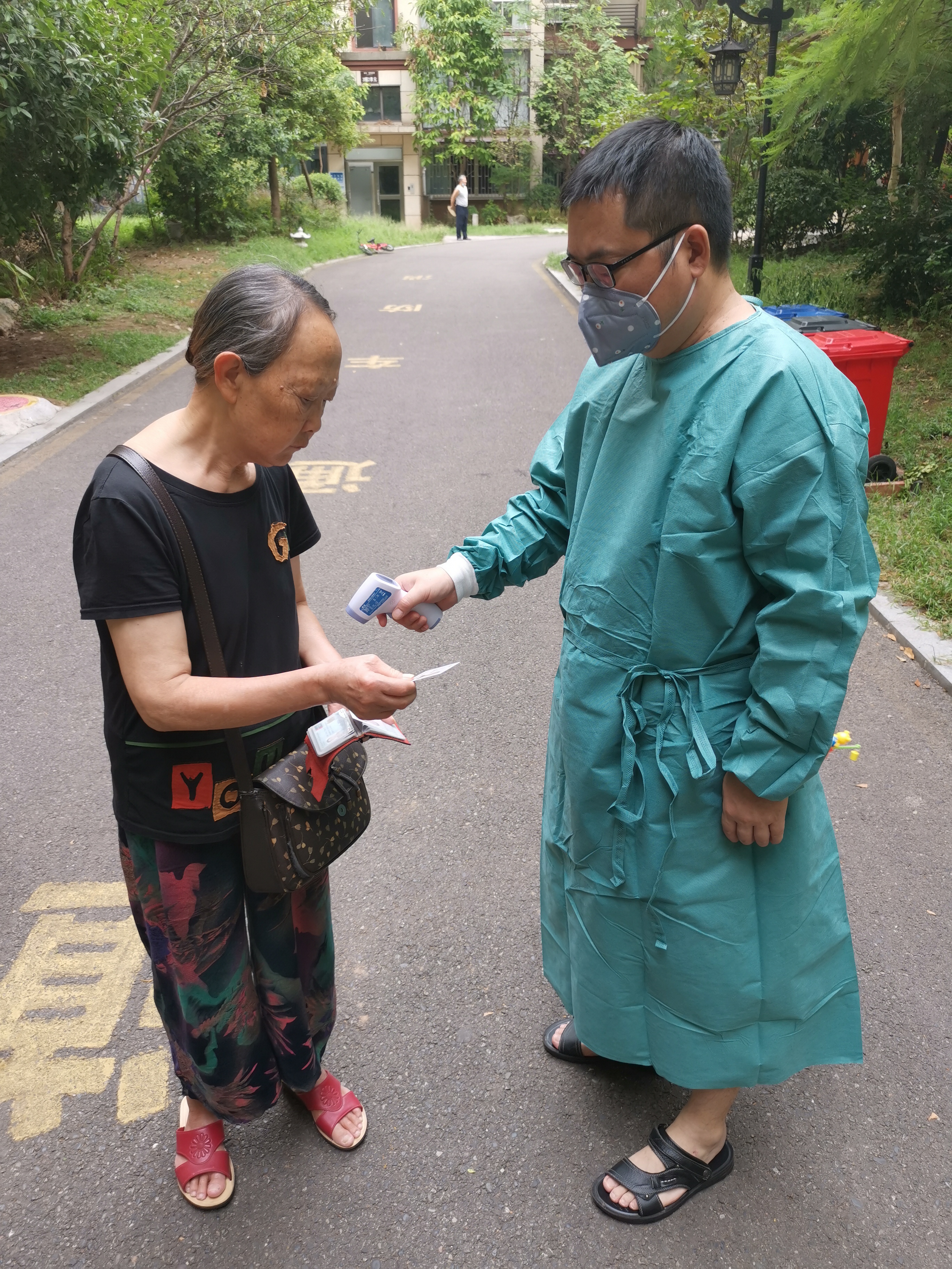 “老輩子,來測一下體溫”。城投集團黨委委員、副總經(jīng)理黃修華正在小區(qū)門口為進出的居民測量體溫。他下沉一線、強化擔(dān)當(dāng),主動認領(lǐng)工作任務(wù),認真做好卡口值守、核查登記、秩序維護、困難群眾幫扶等工作,為社區(qū)疫情防控貢獻力量。他說,“真真實實地感受到了防疫工作者和志愿者們的辛苦,但作為一名黨員,能為大家服務(wù),內(nèi)心是快樂的。”