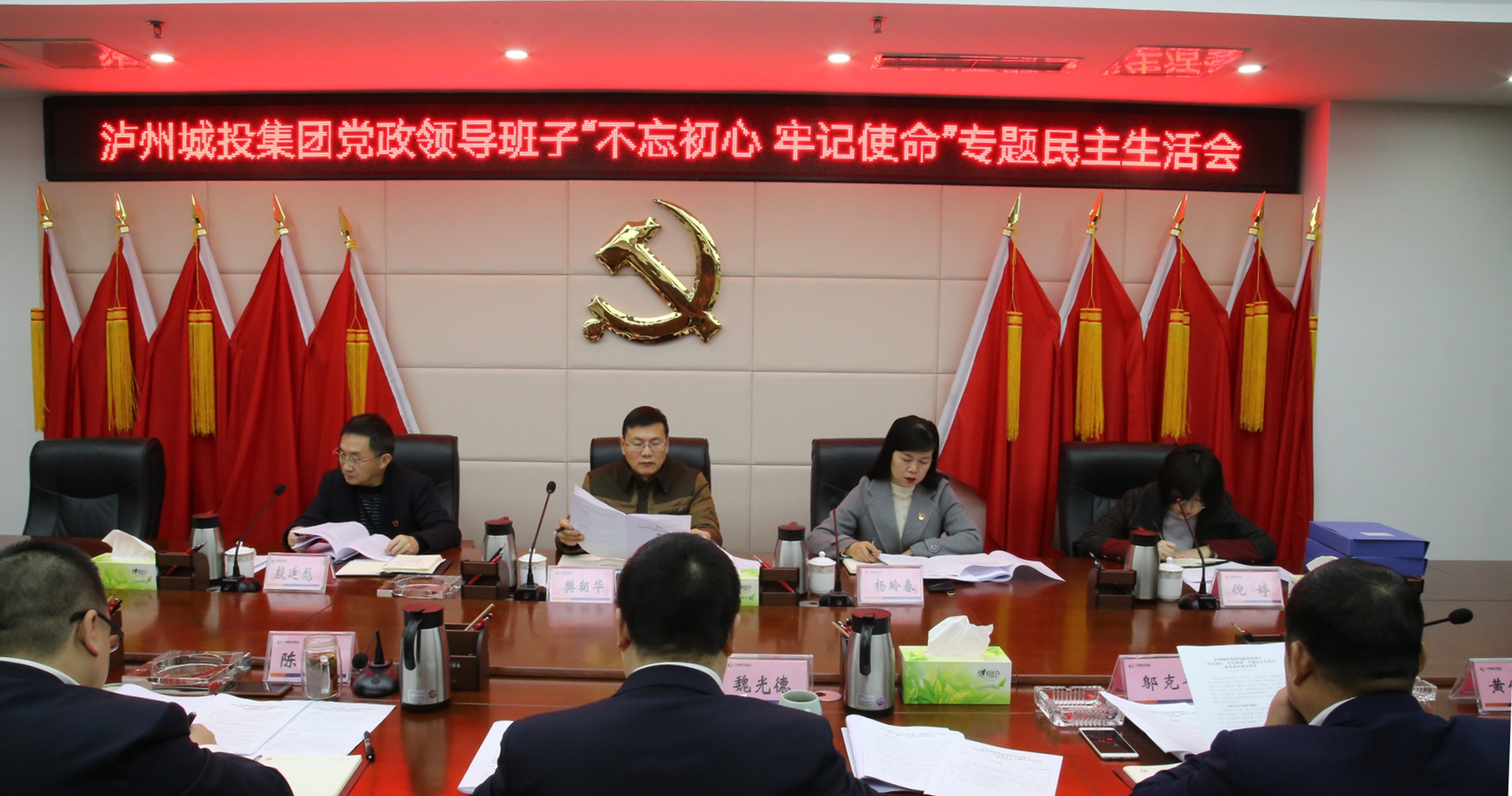 12月10日,瀘州城投集團召開黨政領導班子“不忘初心、牢記使命”專題民主生活會。會議由集團黨委書記、董事長魏光德主持,市委第一巡回指導組副組長樊朝華,市不動產(chǎn)登記中心信息科干部倪婷,兩江新城黨工委委員、兩江新城管委會副主任楊玲春,集團監(jiān)事會主席殷廷彪到會指導并作點評發(fā)言,集團黨政領導班子成員參加會議。