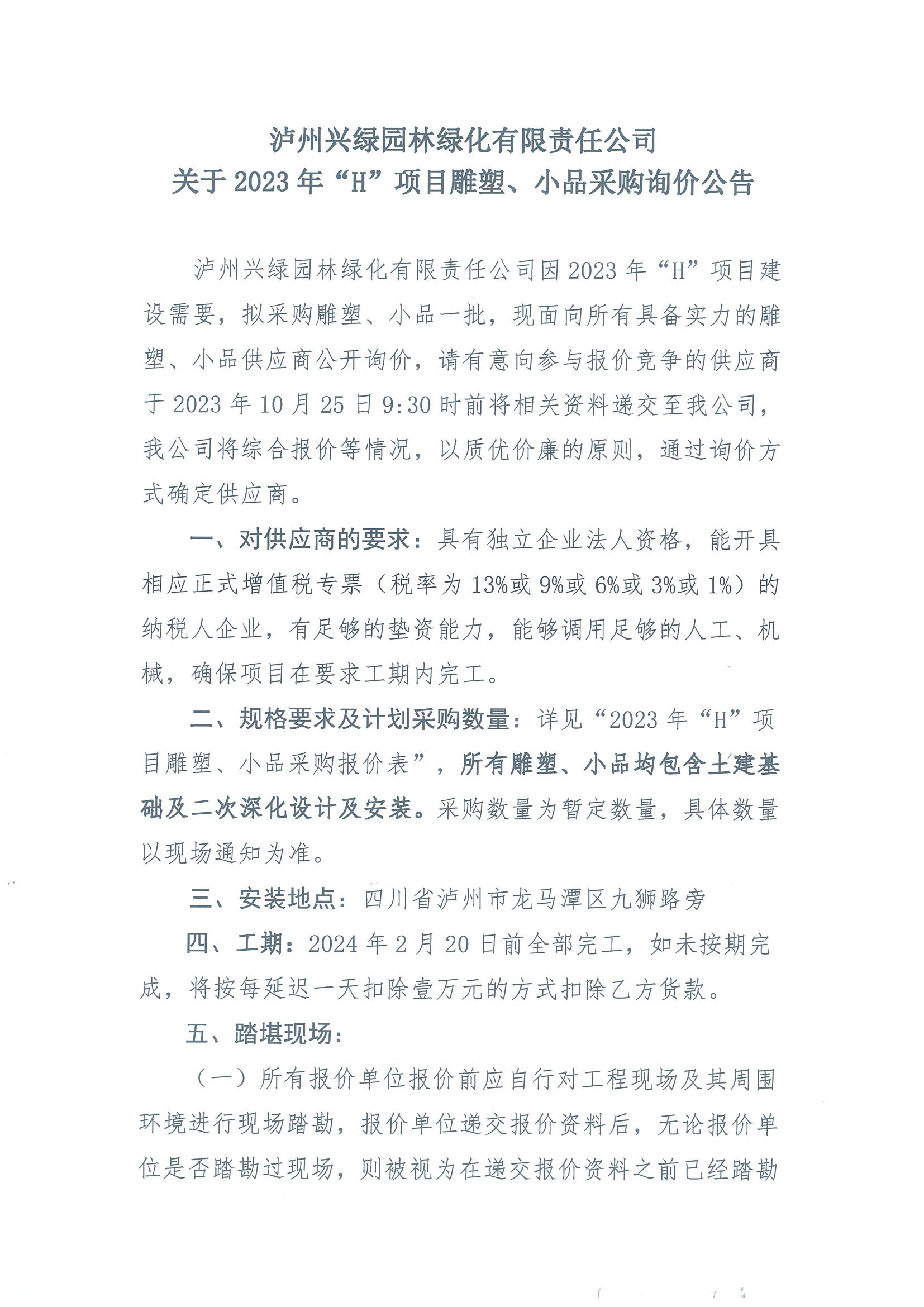 2023年“H”項(xiàng)目雕塑、小品采購(gòu)詢價(jià)公告